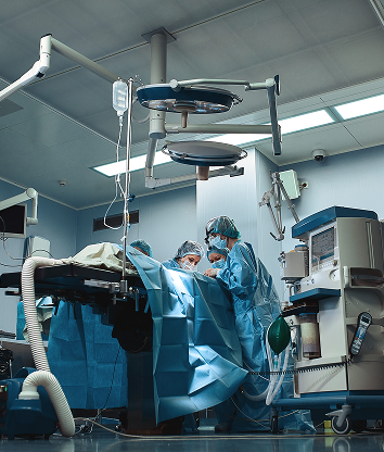 Sterile, tech-driven surgical suites with real-time monitoring.